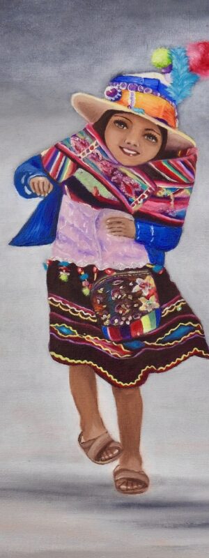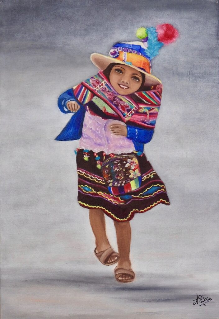 Ce n’est pas là le seul type de défis qu’elle se donne. Anne est aussi en mesure de rendre réelle sur la toile la fatigue du coureur cycliste venant de passer la ligne d’arrivée. Cela à partir d’une photo de famille. Ou bien la gaieté d’une petite fille latino-américaine en habit traditionnel, etc.