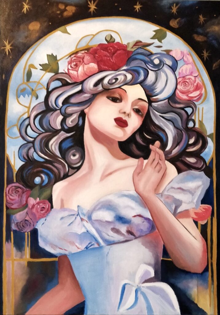 Dès qu’elle en a le temps, Anne ne se prive pas de peindre et c’est assez réussi. Le résultat en est de très belles reproductions comme celle réalisée d’après l’oeuvre de Gustave Klimt « La Dame à l’éventail », une peinture témoignant de sa maîtrise du trait et des couleurs.