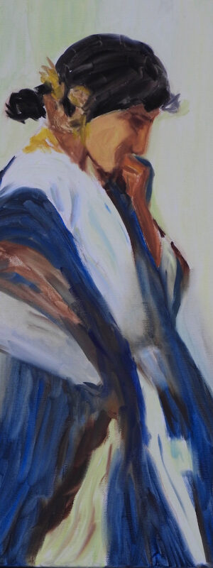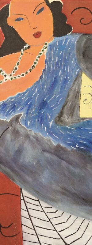 Au cours des derniers mois, plusieurs autres tableaux ont été peints par Anne, dont celui-ci, copié d’une oeuvre de Betsy Dillard Stroud : « Dalila pense à Matisse »